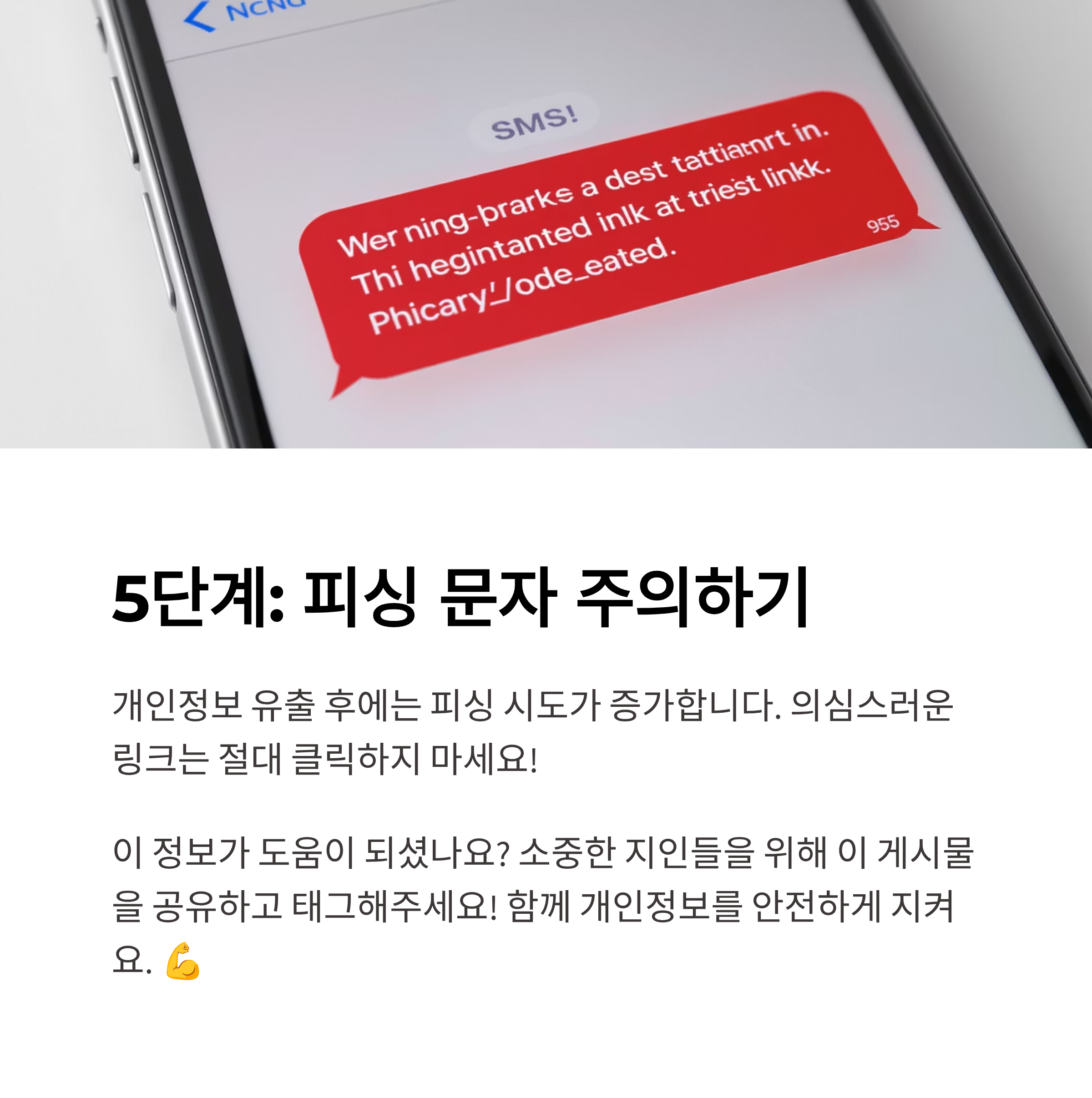 최근 유출된 정보를 활용해 ‘보상금 받으세요’, ‘통신비 환급 안내’ 등의 문자나 전화를 받았다면, 99% 스미싱입니다. 절대 링크 클릭하지 마시고, 모르는 번호는 받지 않는 것이 가장 안전해요. 국민안심번호 서비스를 활용해도 좋습니다.